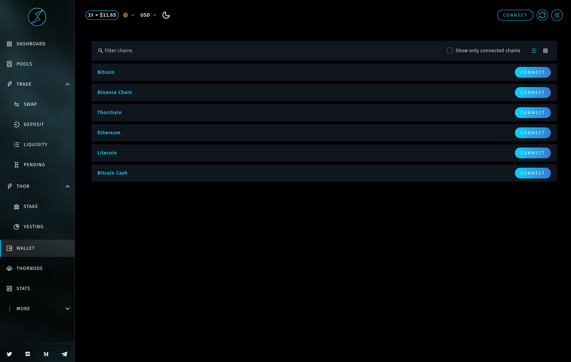 The first thing I did was to understand how to bring my Bitcoin to THORChain. I headed over to the Wallet section.