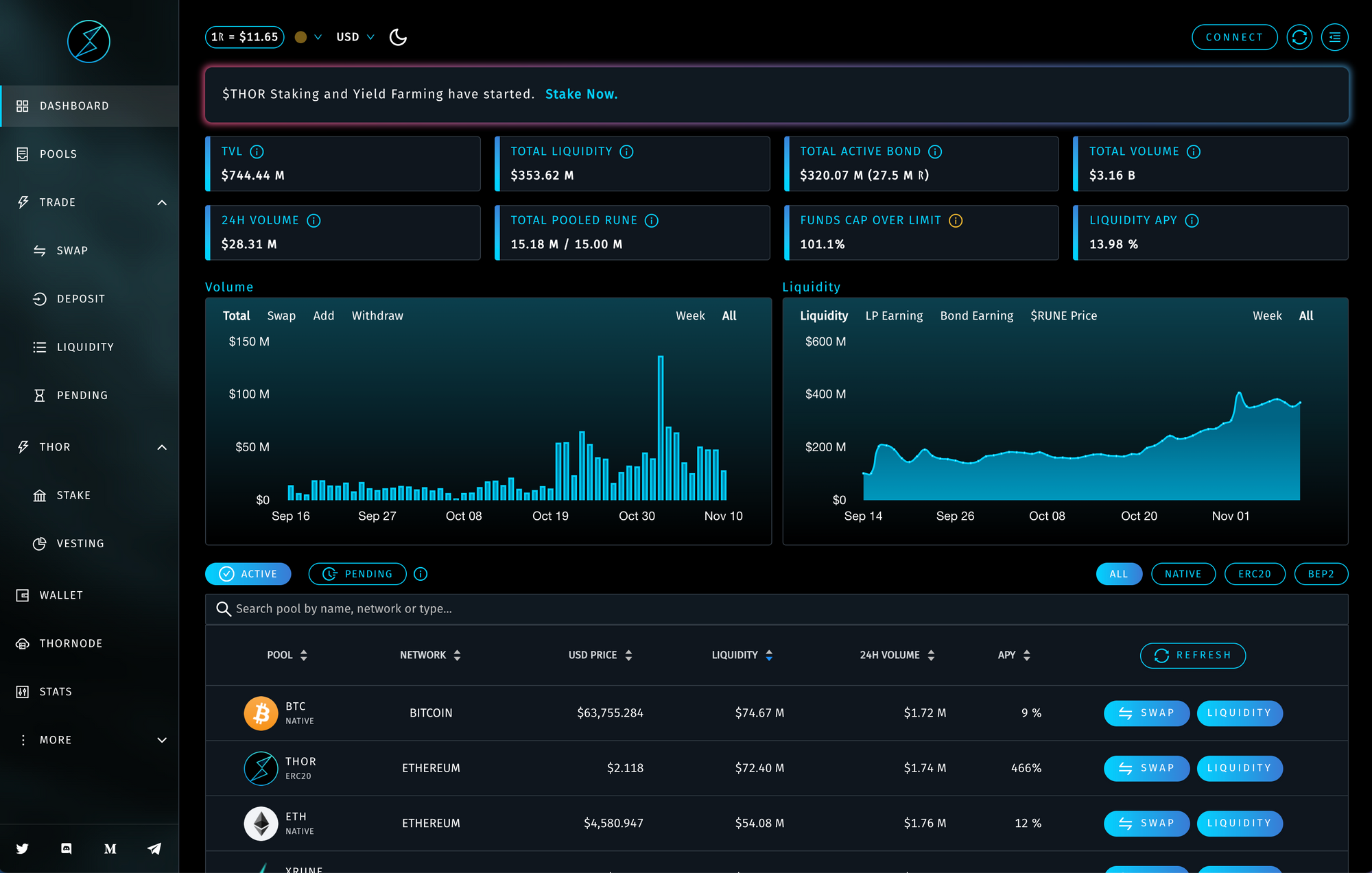 I saw APY up to 390%: the THORChain coin - known as RUNE - as represented on the Ethereum blockchain as an ERC20 token).